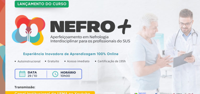 O curso “Nefro+:Aperfeiçoamento em Nefrologia Interdisciplinar para Profissionais do SUS” será lançado no dia 29 de outubro, às 10h, no Canal institucional da UFMA no Youtube, com aula magna do presidente da Sociedade Brasileira de Nefrologia, Dr. José Andrade Moura Neto e mediação do professor Natalino Salgado, coordenador do Projeto Nefro + e do curso. Após o lançamento serão abertas as inscrições no site ufmavirtual.ufma.br. O acesso ao curso é gratuito e destinado a profissionais da área da saúde vinculados à Atenção Primária e Especializada do SUS.